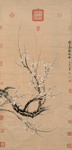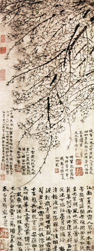 王冕,字元章,浙江诸暨人。他是元末文坛有影响的诗人,又是画坛上以画墨梅开创写意新风的花鸟画家。他的诗常流露出对元朝统治的愤懑情绪,而他的墨梅也借物抒怀,自认喜写“野梅”,不作“官梅”,以蔑视当时那些“峨冠腐儒”。晚年他避居会稽九里山,自筑“梅花屋”,种粟养鱼,以清贫生活了其馀生。
