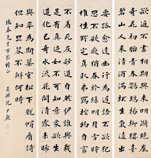 民国初年,书坛就有“南沈北于(右任)”之称。著名文学家徐平羽先生,谓沈老之书法艺术成就,“超越元、明、清,直入宋四家而无愧。”已故全国文物鉴定小组组长谢稚柳教授,认为:“数百年来,书家林立,盖无人出其右者。”已故台北师大教授,国文研究所所长林尹先生赞沈老书法“米元章以下”。台湾大学教授傅申先生在《民初帖学书家沈尹默》一文中,有“楷书中我认为适合他书写的,还是细笔的楮楷,真是清隽秀朗,风度翩翩,在赵孟兆页后,难得一睹。”已故浙江美院陆维钊教授评沈老书法时,云:“沈书之境界、趣味、笔法,写到宋代,一般人只能上追清代,写到明代,已为数不多。”