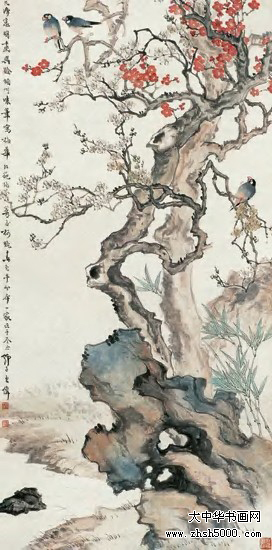 王师子(1885至1950),原名伟,字师梅,四十岁后改名师子,一度寄居上海麦加里,因谐音别署墨稼居士,江苏句容人。历任上海美专、中国艺专、新华艺专等国画教授。治艺谨严,花、鸟、鱼、虫,注意写生。用笔用色,施墨布局,跌宕犹劲,艳而不俗,丽而不浮。书法则以秦权诏版为宗。作诗、治印,均有个人面目。
